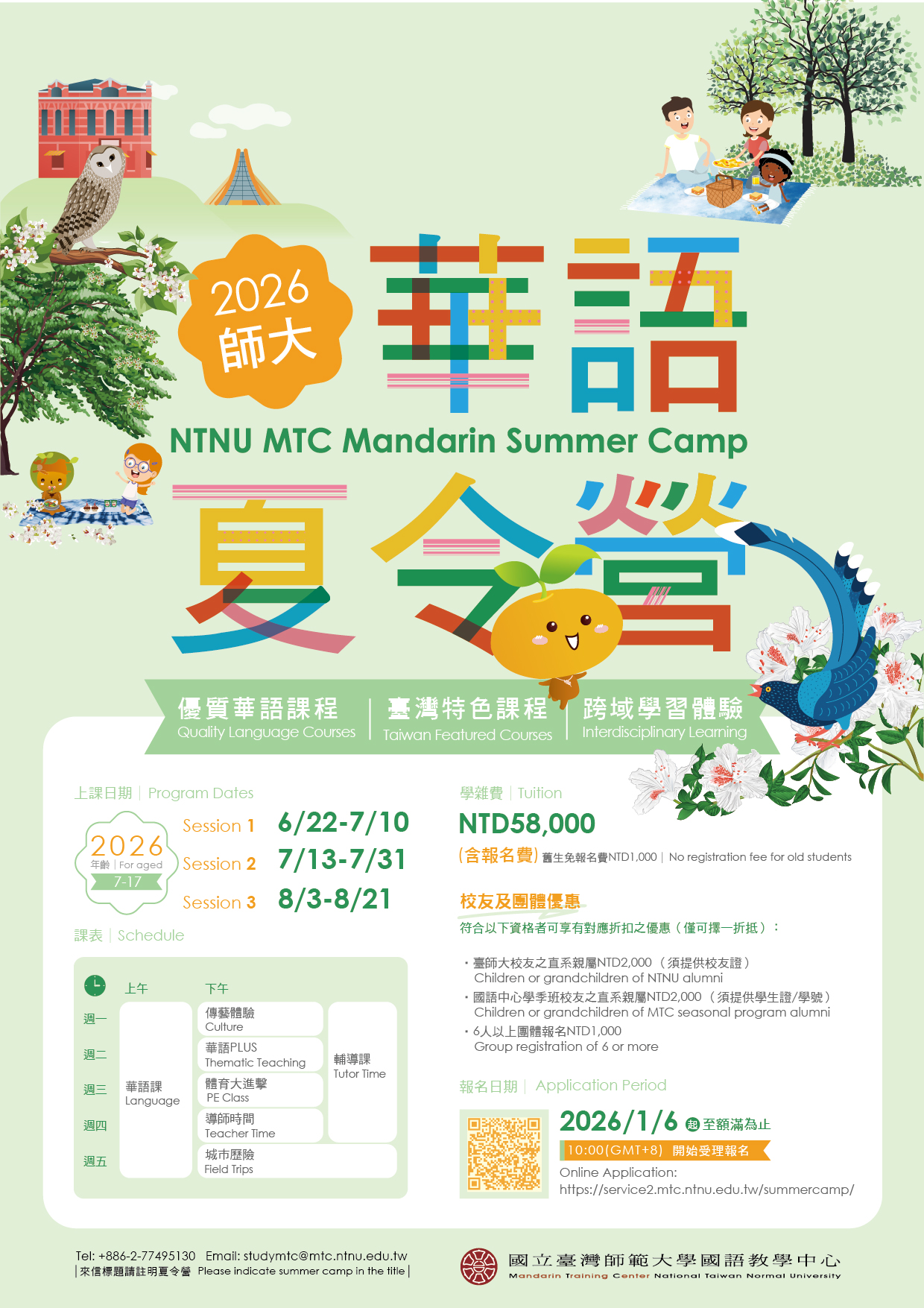 2026年師大華語夏令營1/6開始報名!校友親屬獨享優惠